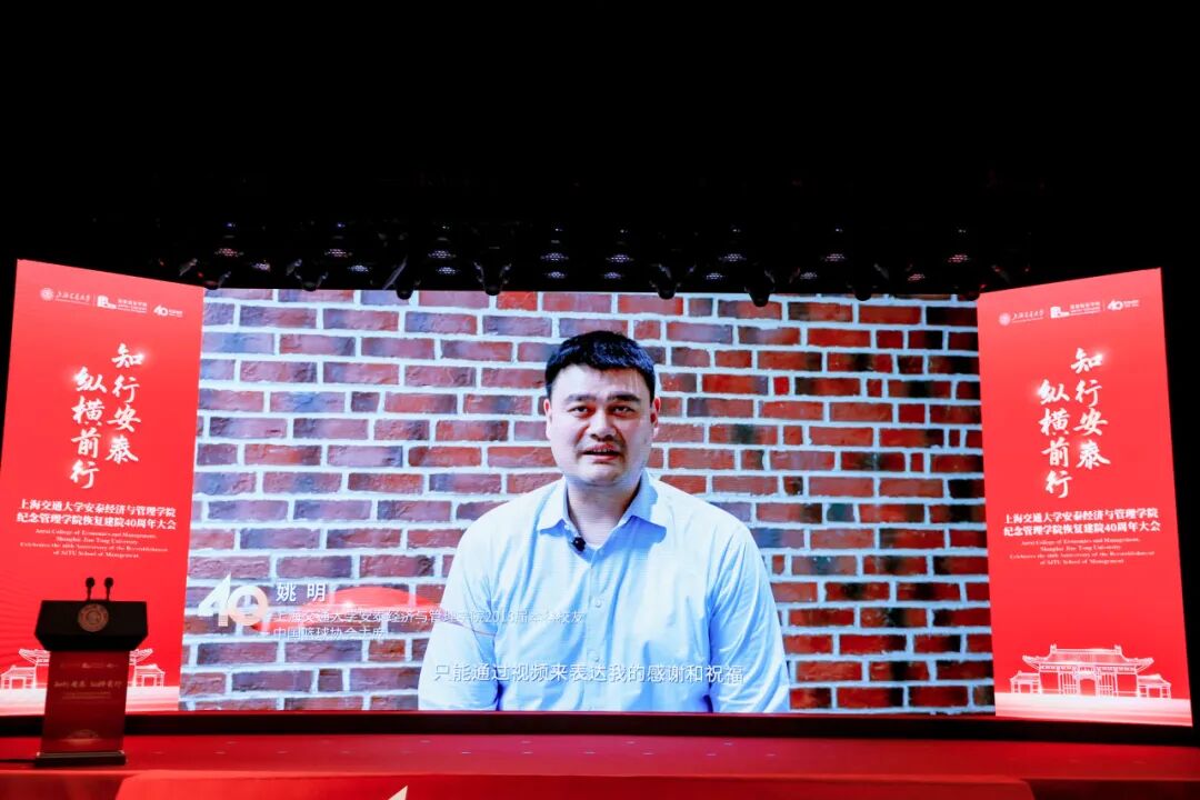 中國籃球協(xié)會主席、2018屆本科校友姚明通過視頻發(fā)言,對學(xué)院恢復(fù)建院40周年表示祝賀。他回顧了在學(xué)院的求學(xué)經(jīng)歷,感謝學(xué)院在培養(yǎng)綜合性體育人才方面所作出的貢獻(xiàn),勉勵廣大學(xué)子傳承弘揚(yáng)交大精神,也期待學(xué)院培養(yǎng)更多籃球精英、體育精英。