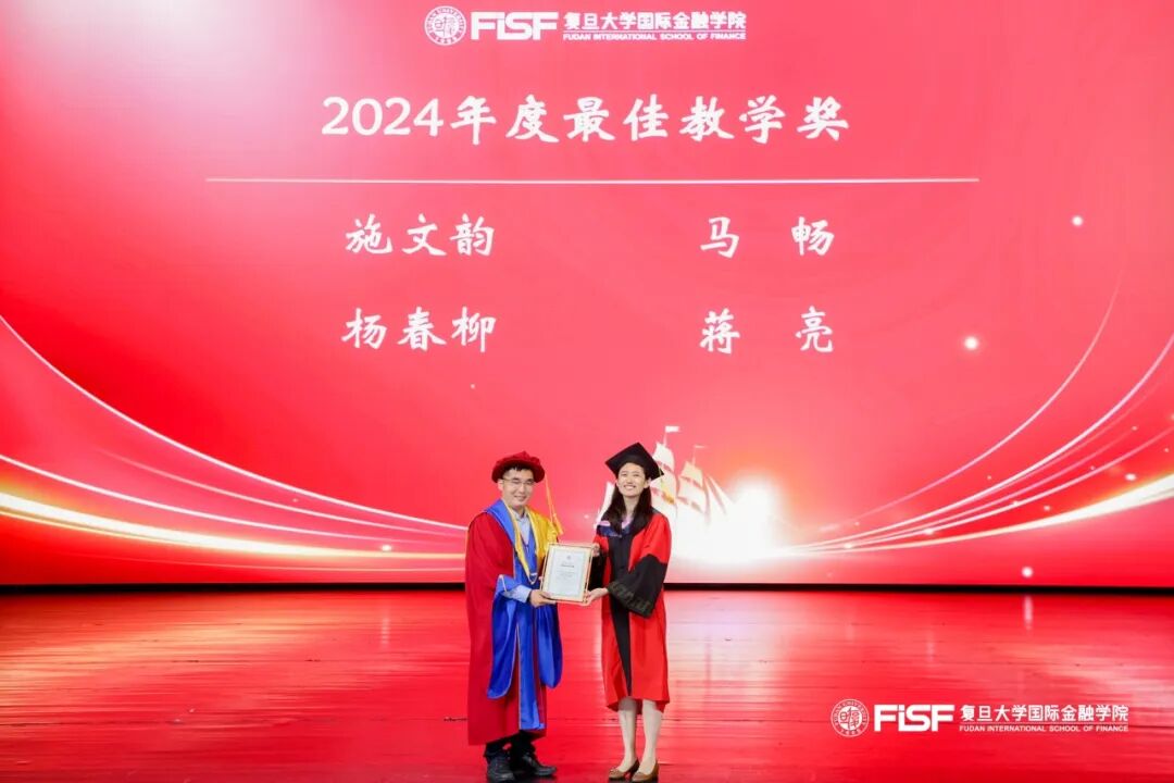 ▲ 學(xué)院黨總支副書記、副院長(zhǎng)、金融學(xué)教授高華聲向施文韻、馬暢、楊春柳、蔣亮教授頒發(fā)“2024年度最佳教學(xué)獎(jiǎng)”