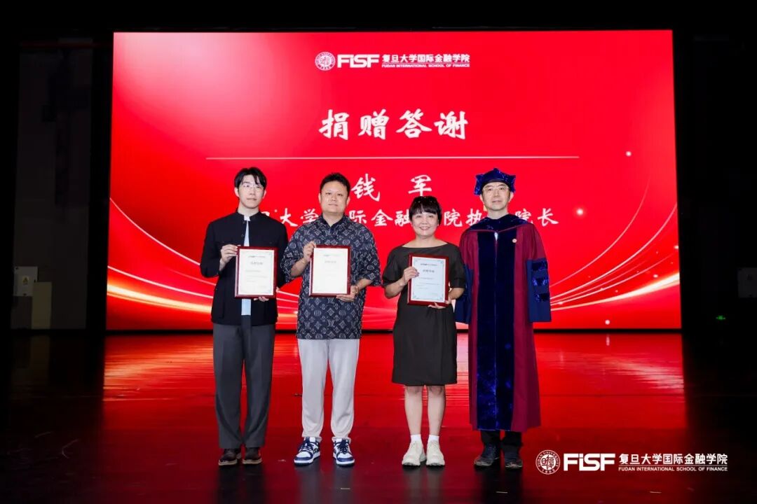 ▲ 學(xué)院執(zhí)行院長(zhǎng)、金融學(xué)教授錢軍向企業(yè)代表頒發(fā)捐贈(zèng)證書,答謝捐贈(zèng)