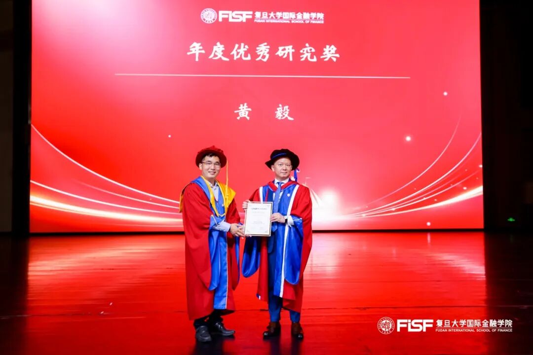 ▲ 學(xué)院黨總支副書記、副院長(zhǎng)、金融學(xué)教授高華聲向黃毅教授頒發(fā)“2024年度優(yōu)秀研究獎(jiǎng)”