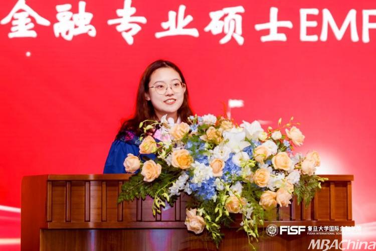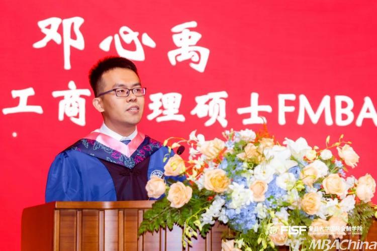 ▲ 全日制金融MBA畢業(yè)生代表鄧心禹發(fā)言