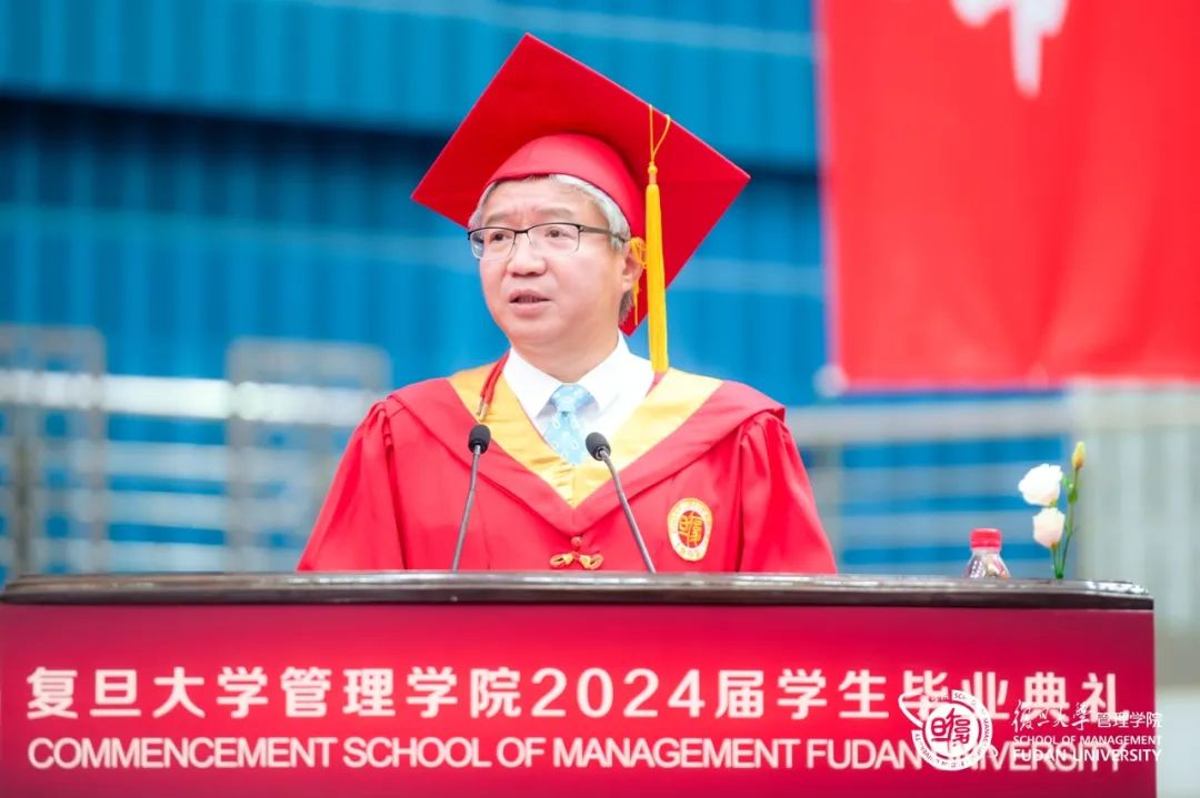 今天,我們齊聚一堂,共同見證復旦大學管理學院2024屆本科生、碩士生、博士生,以及MBA、EMBA、MPAcc、DBA項目的2368名畢業(yè)生們,在復旦大學管理學院順利完成學業(yè),即將揚帆起航,開啟人生新篇章。我首先轉(zhuǎn)達復旦大學黨委書記裘新同志、校長金力院士對管理學院2024屆畢業(yè)生的祝賀和祝福。我也代表復旦大學管理學院全體師生員工,向全體畢業(yè)生們致以最熱烈的祝賀和最誠摯的祝福!