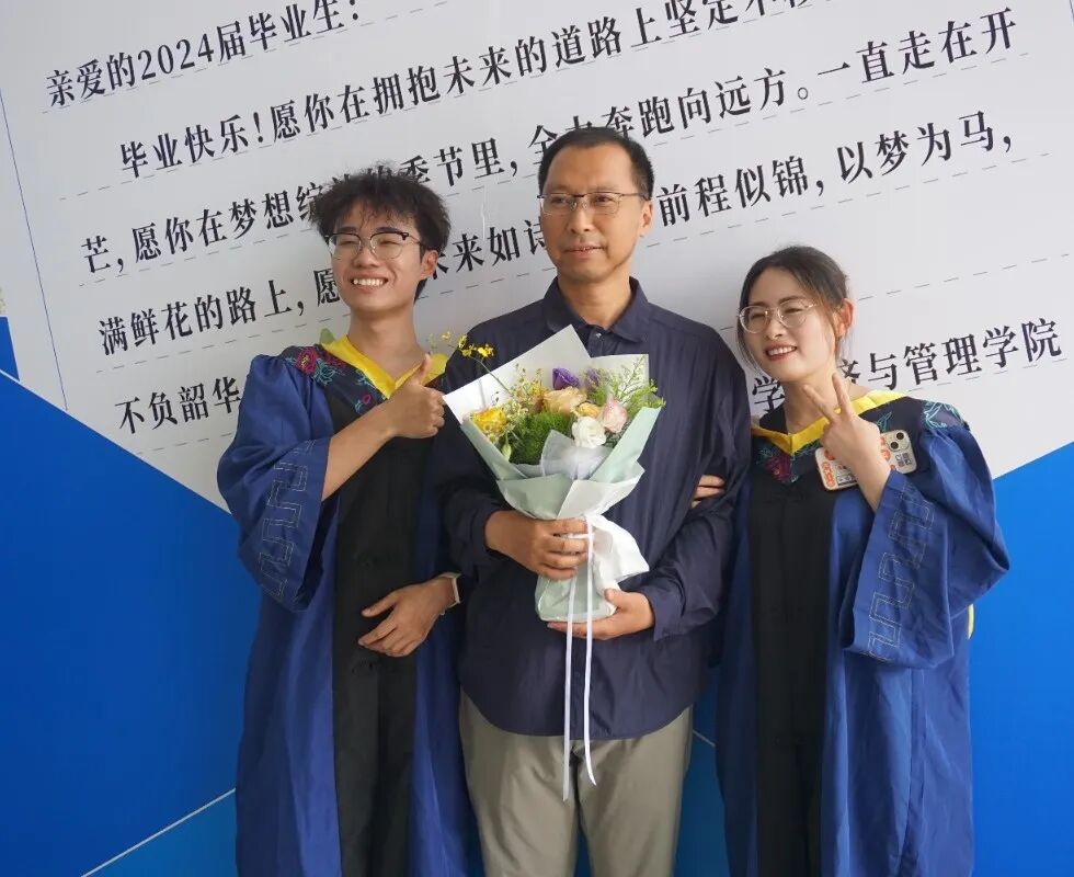 經(jīng)濟與管理學院院長、校學位評定委員會委員、學院學位評定分委會主席陳旭教授,經(jīng)管學院副院長、學院學位評定分委會副主席肖延高教授,經(jīng)管學院副院長潘景銘教授,經(jīng)管學院副院長、學院學位評定分委會委員李強教授為到場的學子撥穗并授予碩士學位。伴隨著激昂而歡快的授位樂曲,當流蘇從學位帽右邊被撥至左邊那一刻,象征著學子們圓滿完成學業(yè),正式開啟了人生的新篇章。