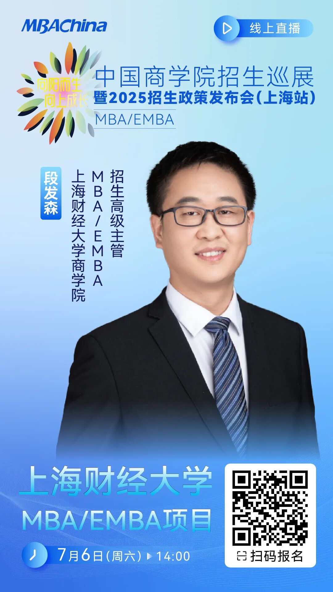 7月6日 | 上海財經(jīng)大學(xué)商學(xué)院MBA/EMBA項目邀您參加中國商學(xué)院招生巡展暨2025招生政策發(fā)布會(上海站)