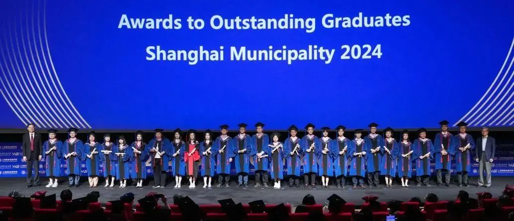 正如畢業(yè)生代表所言,他們在高金不斷拓展知識和認知的邊界,成就更好的自我和彼此。學院也對優(yōu)秀畢業(yè)生進行了表彰,今年共有21位同學榮獲“上海市優(yōu)秀畢業(yè)生”稱號,36位同學獲“上海交通大學優(yōu)秀畢業(yè)生”稱號。屠光紹、顧鋒、王江、歸琳、嚴弘、張介先后為優(yōu)秀畢業(yè)生頒獎。