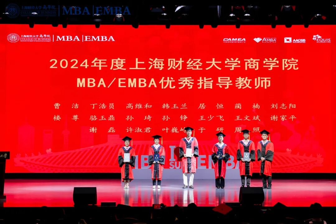 在畢業(yè)典禮上,還舉行了優(yōu)秀指導(dǎo)教師和優(yōu)秀畢業(yè)生頒獎(jiǎng)儀式。19位教師榮獲“2024年度上海財(cái)經(jīng)大學(xué)商學(xué)院MBA/EMBA優(yōu)秀指導(dǎo)教師”,商學(xué)院副院長孫琦為獲獎(jiǎng)教師代表頒發(fā)榮譽(yù)證書。