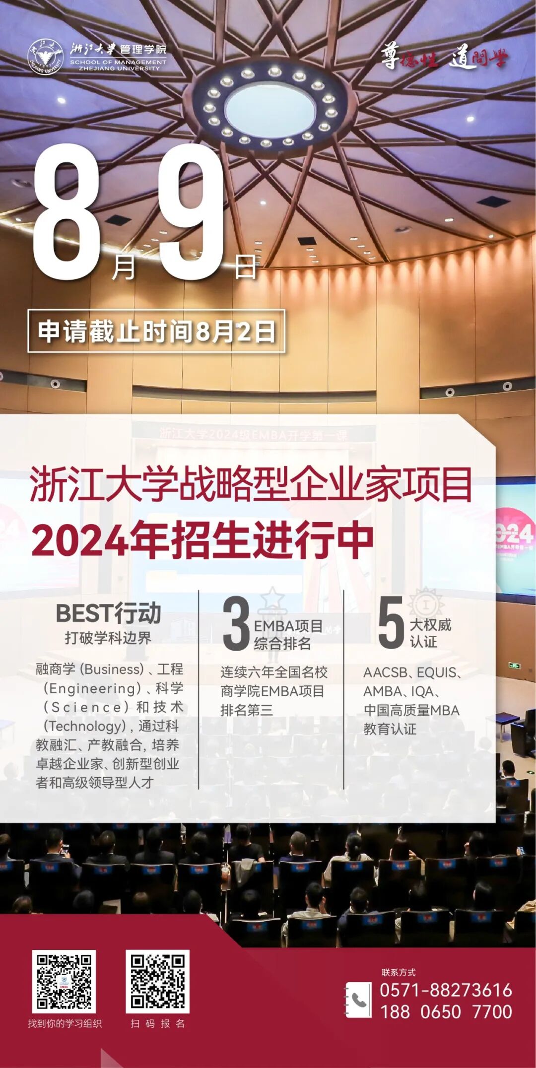 8月9日,報(bào)名丨浙江大學(xué)戰(zhàn)略型企業(yè)家項(xiàng)目(第六期)即將開班,邀您共創(chuàng)商業(yè)新紀(jì)元!