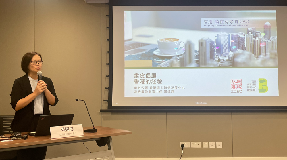 隨后,高級廉政教育主任鄧婉恩老師為學(xué)員們帶來了一場題為《肅貪倡廉 香港的經(jīng)驗》的精彩講座。鄧?yán)蠋熞云湄S富的實踐經(jīng)驗和深厚的專業(yè)知識,深入淺出地介紹了廉政公署的組織架構(gòu)、運作機(jī)制以及近年來處理的典型反貪案例。她特別強(qiáng)調(diào),廉政公署的成功不僅在于其高效的執(zhí)法能力,更在于其堅持的“三管齊下”策略——即執(zhí)法、預(yù)防和教育三者并重,共同構(gòu)建了一個全方位、多層次的反腐敗體系。