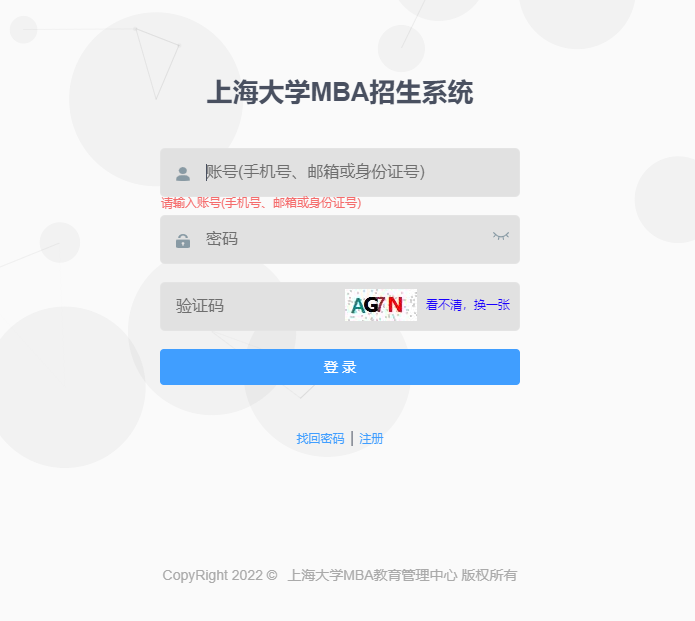 考生登錄網(wǎng)站注冊(cè)報(bào)名,網(wǎng)站如下:https://shumbazs.shu.edu.cn