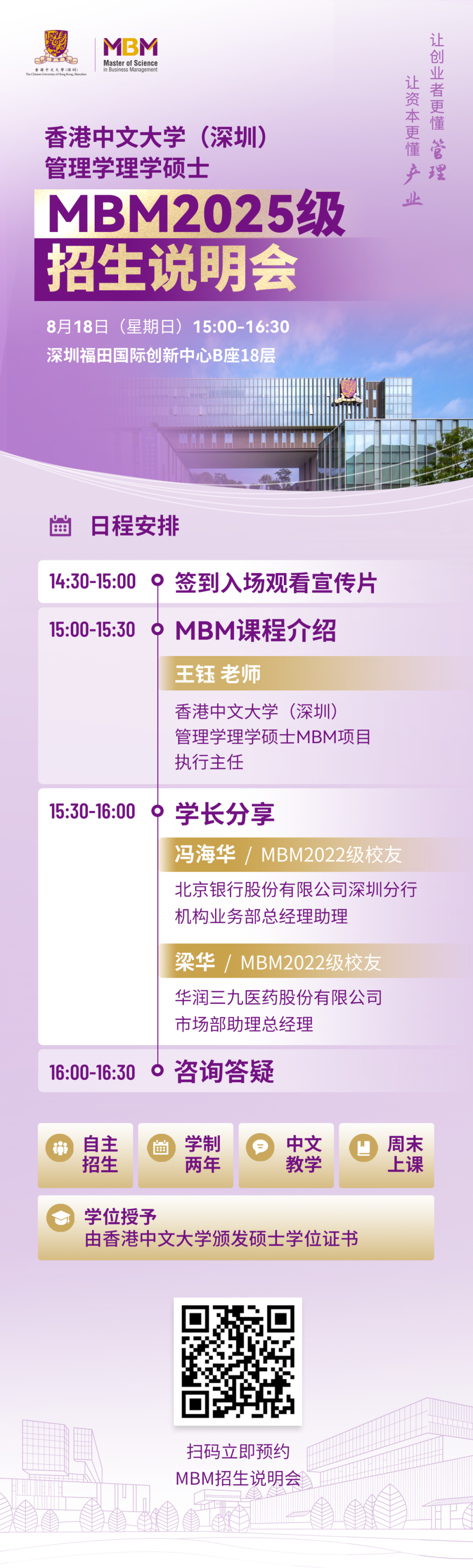 活動(dòng)日程 | 8月18日港中大(深圳)MBM2025級(jí)招生說明會(huì)