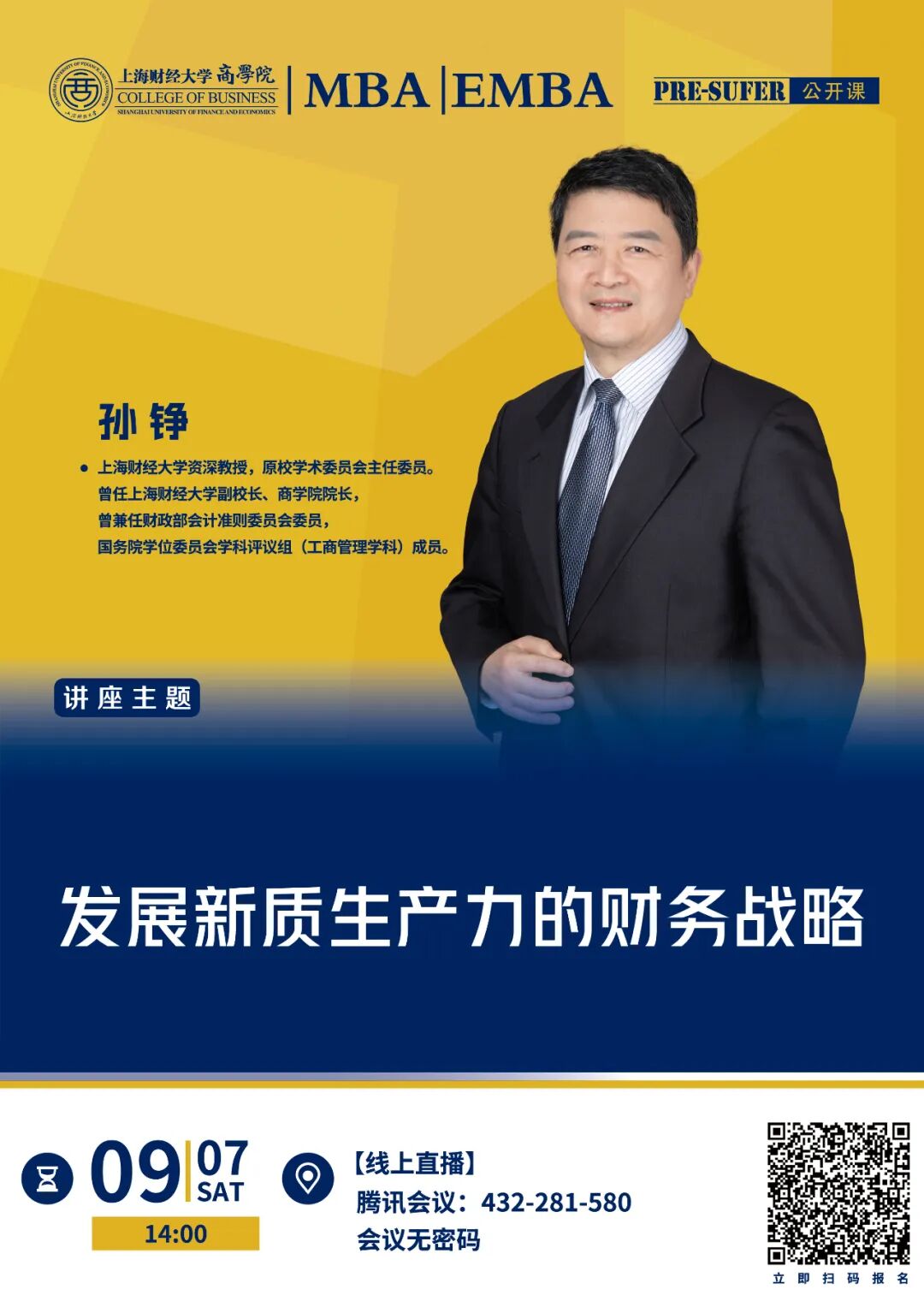 9.7丨《發(fā)展新質(zhì)生產(chǎn)力的財(cái)務(wù)戰(zhàn)略》上財(cái)MBA Pre-Sufer公開課暨2025年入學(xué)MBA/EMBA項(xiàng)目介紹及招生政策解析