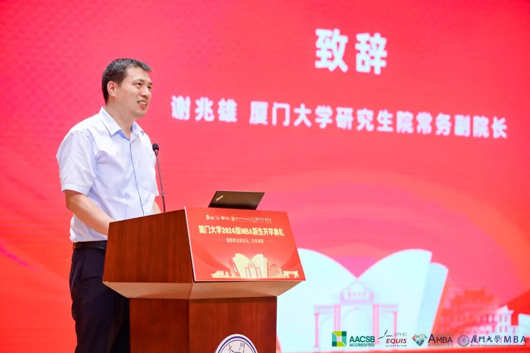 謝兆雄代表研究生院向24級全體新生致以祝賀。他表示,24級新生應(yīng)牢記廈大精神,止于至善,注重實踐,知行合一,在美麗廈園實現(xiàn)人生價值和社會價值的雙重飛躍。