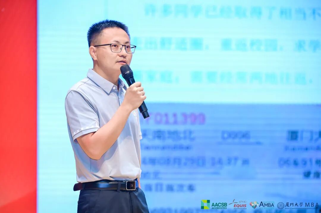 第十九屆廈門大學(xué)MBA聯(lián)合會聯(lián)席主席22級林少川向24級新生介紹了MBA聯(lián)合會的組織架構(gòu)、部門職能以及系列活動。希望大家在廈大見人、見事、見自己,并期待更多的新同學(xué)加入聯(lián)合會。