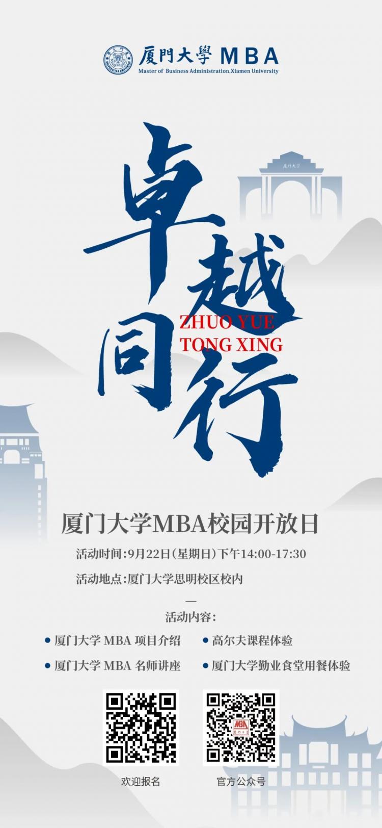 9月20日12時截止!廈門大學(xué)MBA卓越同行校園開放日活動開放報名