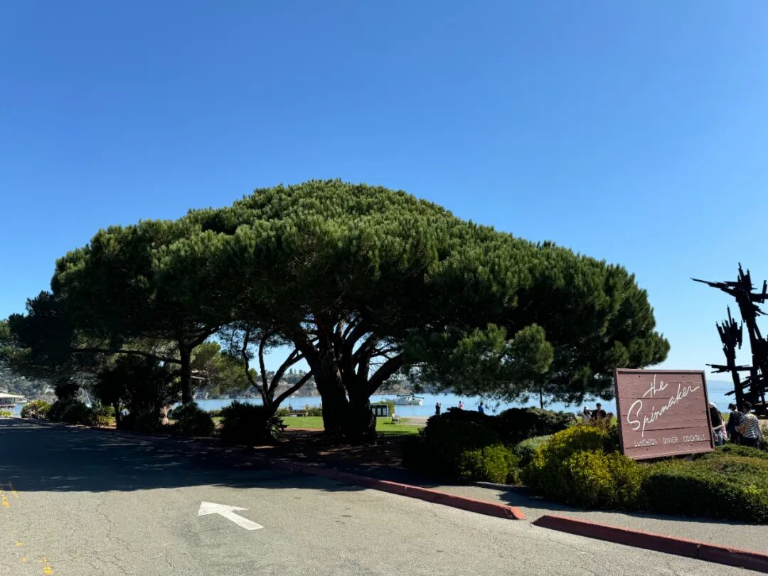 在索薩利托,我們收獲了來(lái)自這次游學(xué)行程中的“盲盒”——舊金山灣的海上巡航。旅行社并未事先告知我們這段旅行計(jì)劃,因此團(tuán)員們都頗為驚喜和驚嘆。玉鑒瓊田三萬(wàn)頃,著我扁舟一葉。在如同鏡面一般平靜而又深邃的太平洋上航行,金門大橋的倩影深深印刻在腦海之中。在海上與岸邊欣賞到的金門大橋迥然不同。她的動(dòng)態(tài)魅影,婀娜多姿,與那海天一色、金色日輝相互交映。扣舷共嘯,旁觀拍手笑疏狂。萬(wàn)象皆賓客,悠然心會(huì),妙處不言自喻。