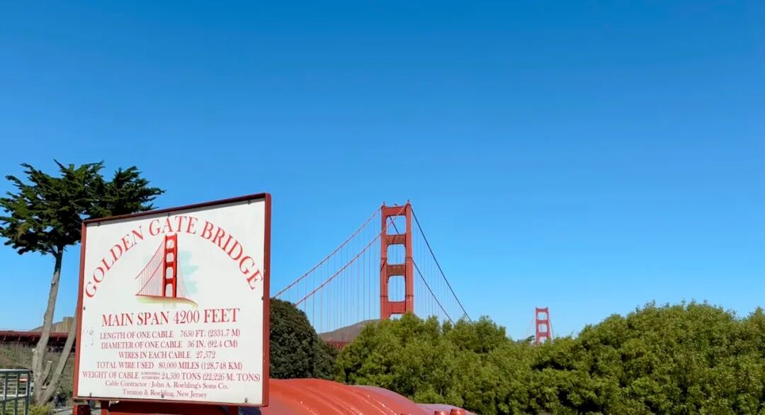 隨即,游學(xué)團(tuán)便到達(dá)了金門大橋。Golden Gate Bridge,以其朱紅色的橋身,成為舊金山最著名的地標(biāo),也是世界上最著名的大橋之一。尤其是上世紀(jì)的好萊塢電影,時(shí)常把金門大橋作為取景地。作為游客必打卡榜上第一,金門大橋卻常常為清冷霧氣所繚繞,不得窺見真容。然而,美西游學(xué)團(tuán)卻運(yùn)氣爆棚,萬(wàn)里晴空,絲毫沒有與“女神”的阻隔。游學(xué)團(tuán)的熱情與和諧的團(tuán)隊(duì)氛圍為我們的游客照帶來(lái)了與眾不同的出片效果和畢生記憶。