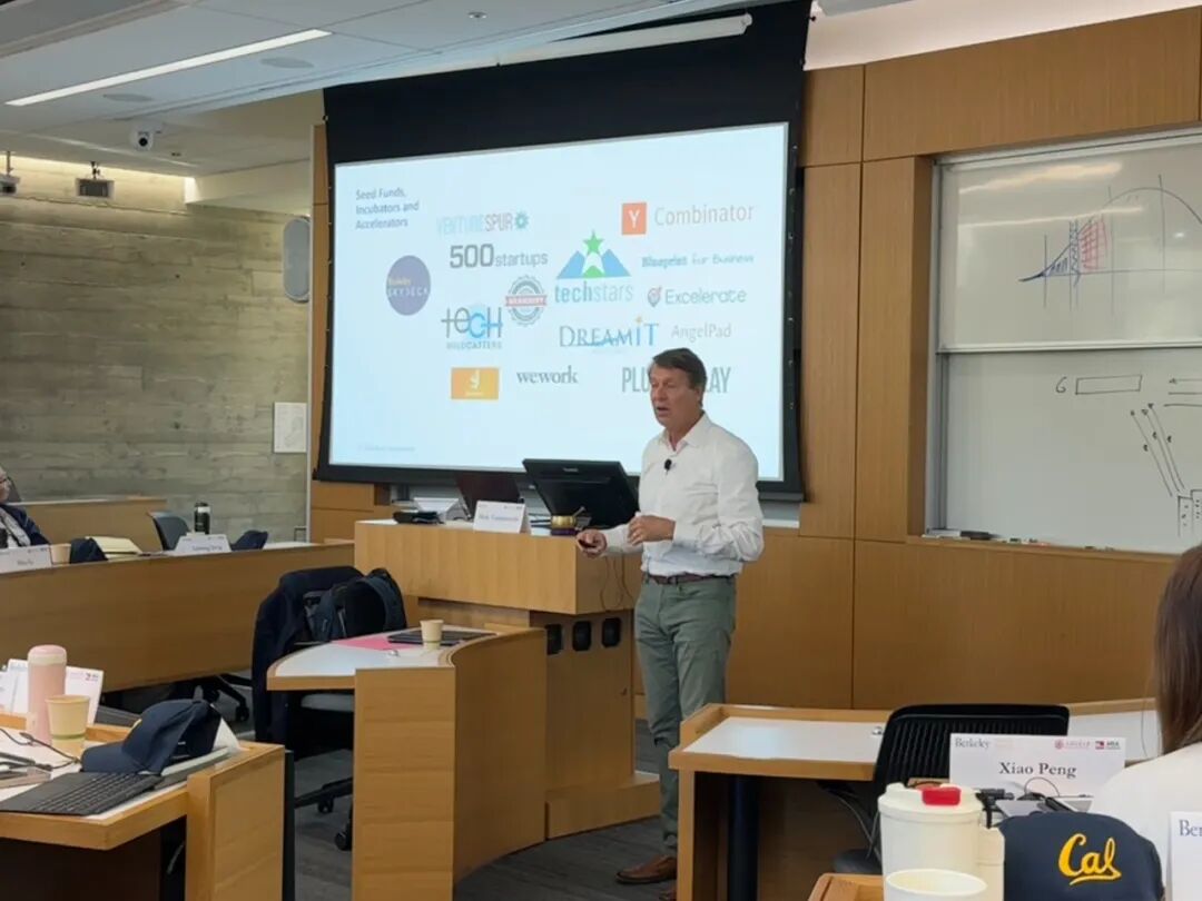 在譽(yù)滿全球的加州大學(xué)伯克利分校哈斯商學(xué)院最新的教學(xué)樓中,同學(xué)們也感受到了哈斯商學(xué)院對(duì)我們的熱烈歡迎。每一位同學(xué)的桌前都放置著日程安排表、哈斯商學(xué)院的筆記本和帶有伯克利logo的棒球帽,甚至還有一張學(xué)生商店的優(yōu)惠券。Mark Coopersmith教授對(duì)加州大學(xué)體系、伯克利分校以及哈斯商學(xué)院做了生動(dòng)又令人印象深刻的總體介紹,又對(duì)伯克利分校所在的灣區(qū)硅谷和硅谷企業(yè)生態(tài)圈做了整體介紹。并基于其自身的雙重身份——哈斯商學(xué)院教授和硅谷風(fēng)投專家,為我們交大安泰美西游學(xué)團(tuán)獨(dú)家定制了專屬課程。