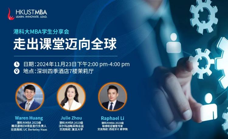 在這里,你將聽(tīng)到他們的真實(shí)故事——從課堂上的思維碰撞到課外的多元文化體驗(yàn)!無(wú)論你對(duì)港科大MBA的選課安排感到好奇,想了解MBA學(xué)習(xí)如何助力職業(yè)發(fā)展,還是希望深入探索跨文化交流的精彩,這場(chǎng)活動(dòng)都將帶給你豐富的啟發(fā)與收獲。