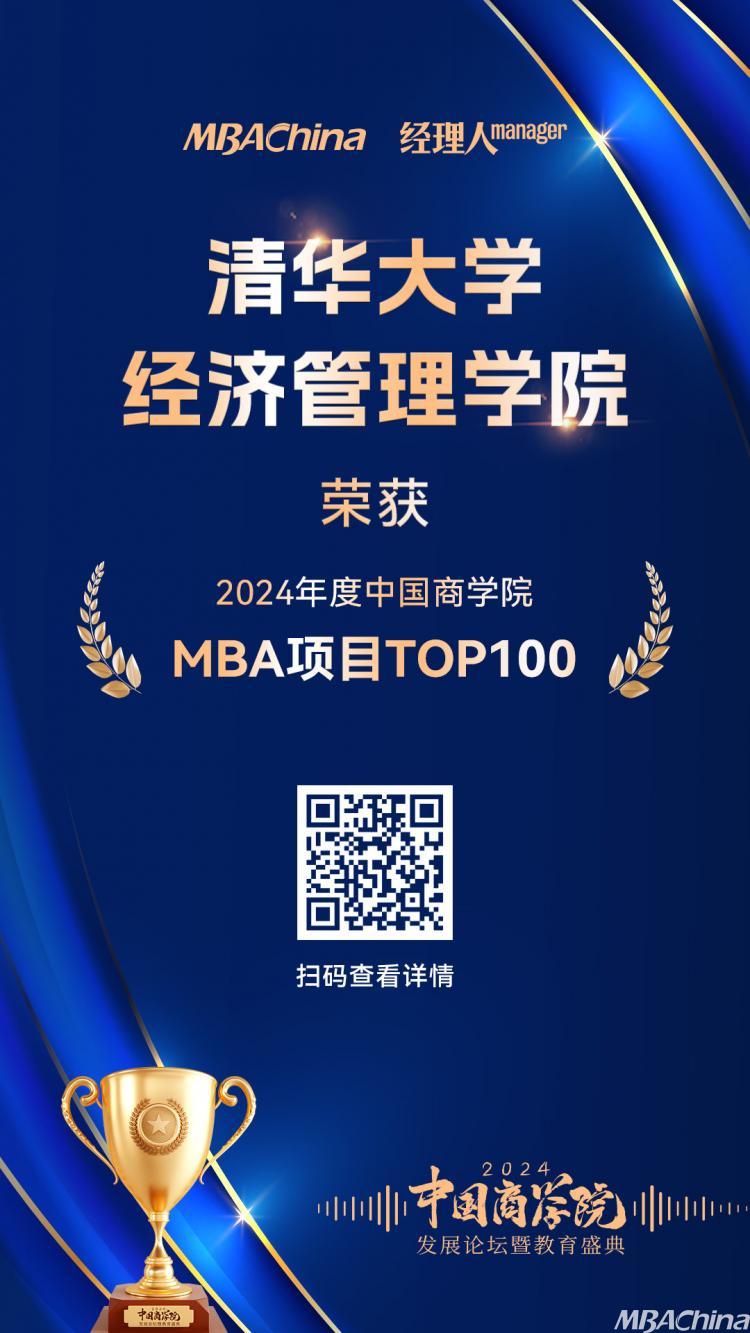 清華大學(xué)經(jīng)濟(jì)管理學(xué)院榮獲“2024年度中國商學(xué)院MBA項(xiàng)目TOP100”!