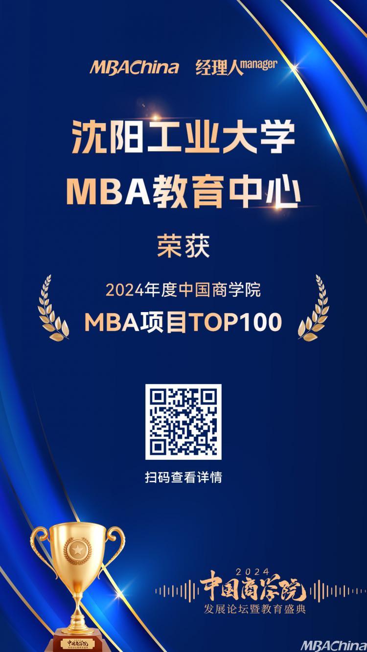 沈陽工業(yè)大學(xué)MBA教育中心榮獲“2024年度中國商學(xué)院MBA項目TOP100”!