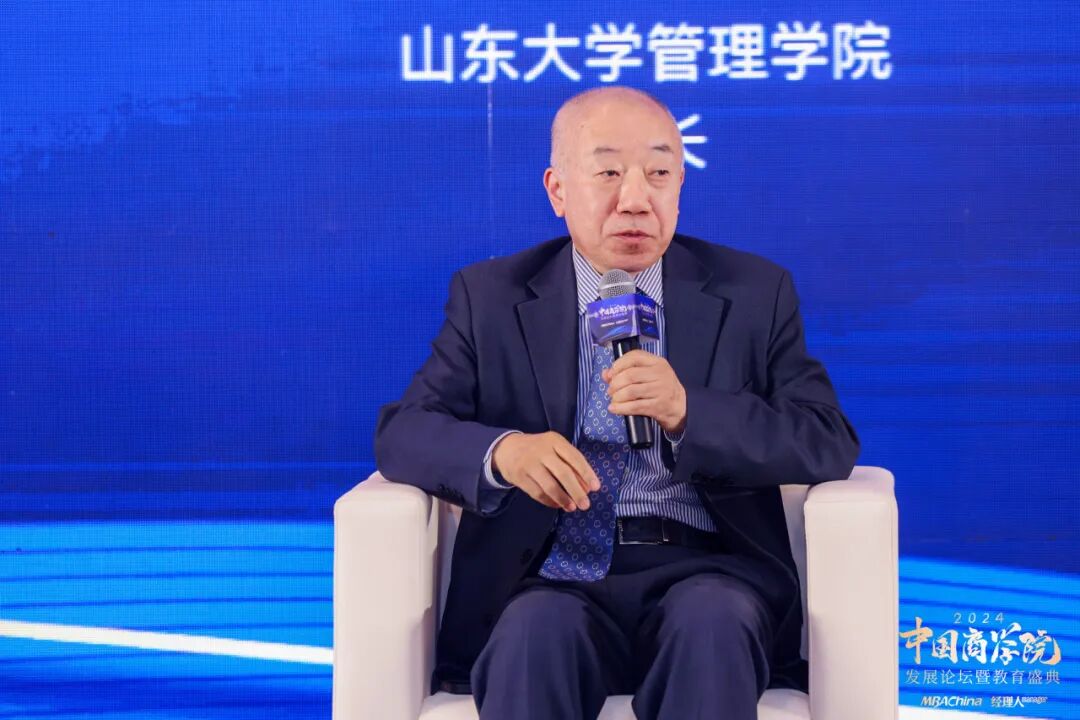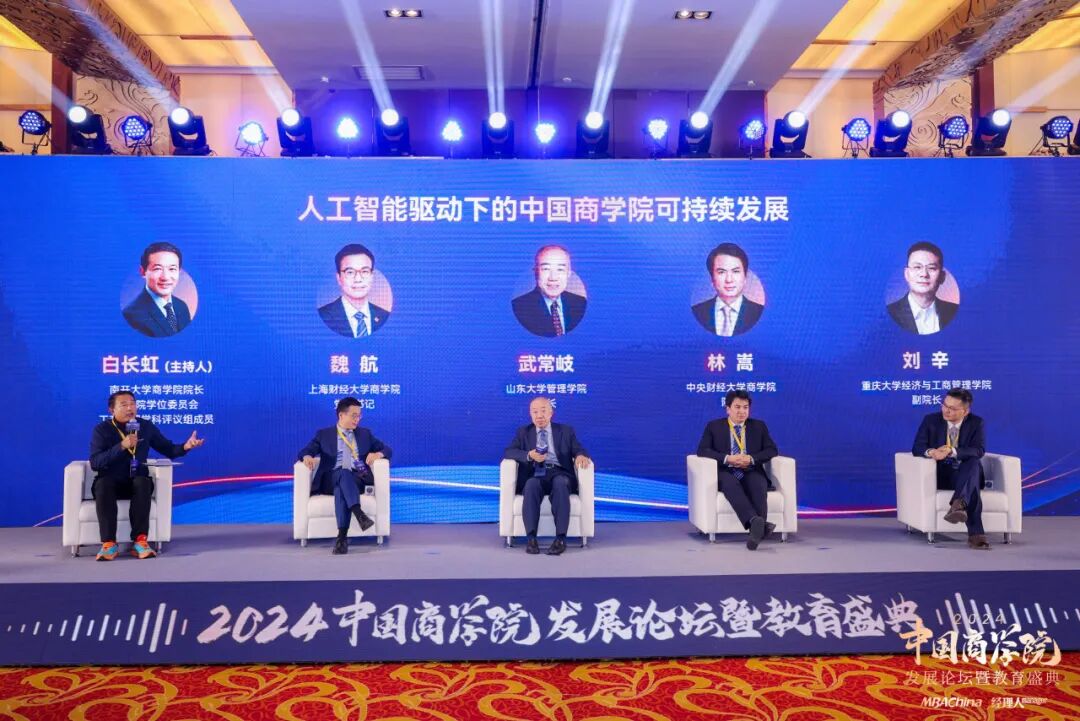 其中,武常岐院長同南開大學(xué)商學(xué)院院長、國務(wù)院學(xué)位委員會(huì)工商管理學(xué)科評議組成員白長虹,上海財(cái)經(jīng)大學(xué)商學(xué)院黨委書記魏航,中央財(cái)經(jīng)大學(xué)商學(xué)院院長兼MBA教育中心主任林嵩,重慶大學(xué)經(jīng)濟(jì)與工商管理學(xué)院副院長劉辛出席圓桌論壇環(huán)節(jié),共同圍繞“人工智能驅(qū)動(dòng)下的中國商學(xué)院可持續(xù)發(fā)展”主題,進(jìn)行深度對話與思想碰撞,探討在人工智能時(shí)代,中國商學(xué)院如何創(chuàng)新教育模式,提升教學(xué)質(zhì)量,以及在復(fù)雜多變的市場環(huán)境中培養(yǎng)具有前瞻性、創(chuàng)新能力和國際視野的商界領(lǐng)袖。