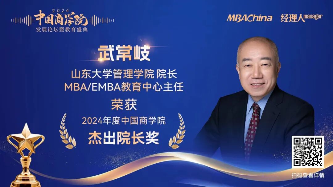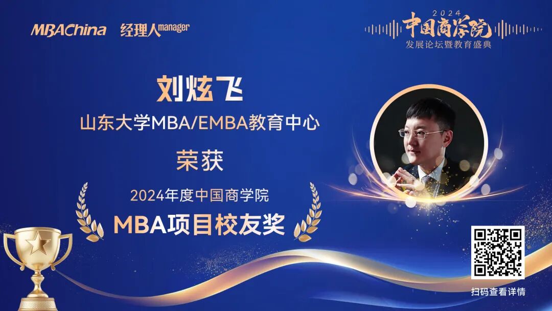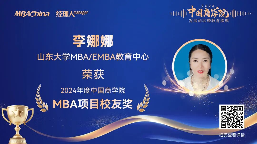 山東大學(xué)MBA/EMBA教育中心榮獲多項(xiàng)榮譽(yù),山大MBA項(xiàng)目首次進(jìn)入“中國商學(xué)院MBA項(xiàng)目TOP100”前二十!榮獲“2024年度中國商學(xué)院MBA項(xiàng)目TOP100”榜單第19名!山東大學(xué)MBA教育中心微信公眾號(hào)榮獲“2024年度中國商學(xué)院新媒體影響力榜單”第10名;山東大學(xué)管理學(xué)院院長、MBA/EMBA教育中心主任武常岐榮獲“2024年度中國商學(xué)院杰出院長獎(jiǎng)”;MBA校友李娜娜、周凱,EMBA校友劉炫飛榮獲“2024年度中國商學(xué)院MBA項(xiàng)目校友獎(jiǎng)”。
