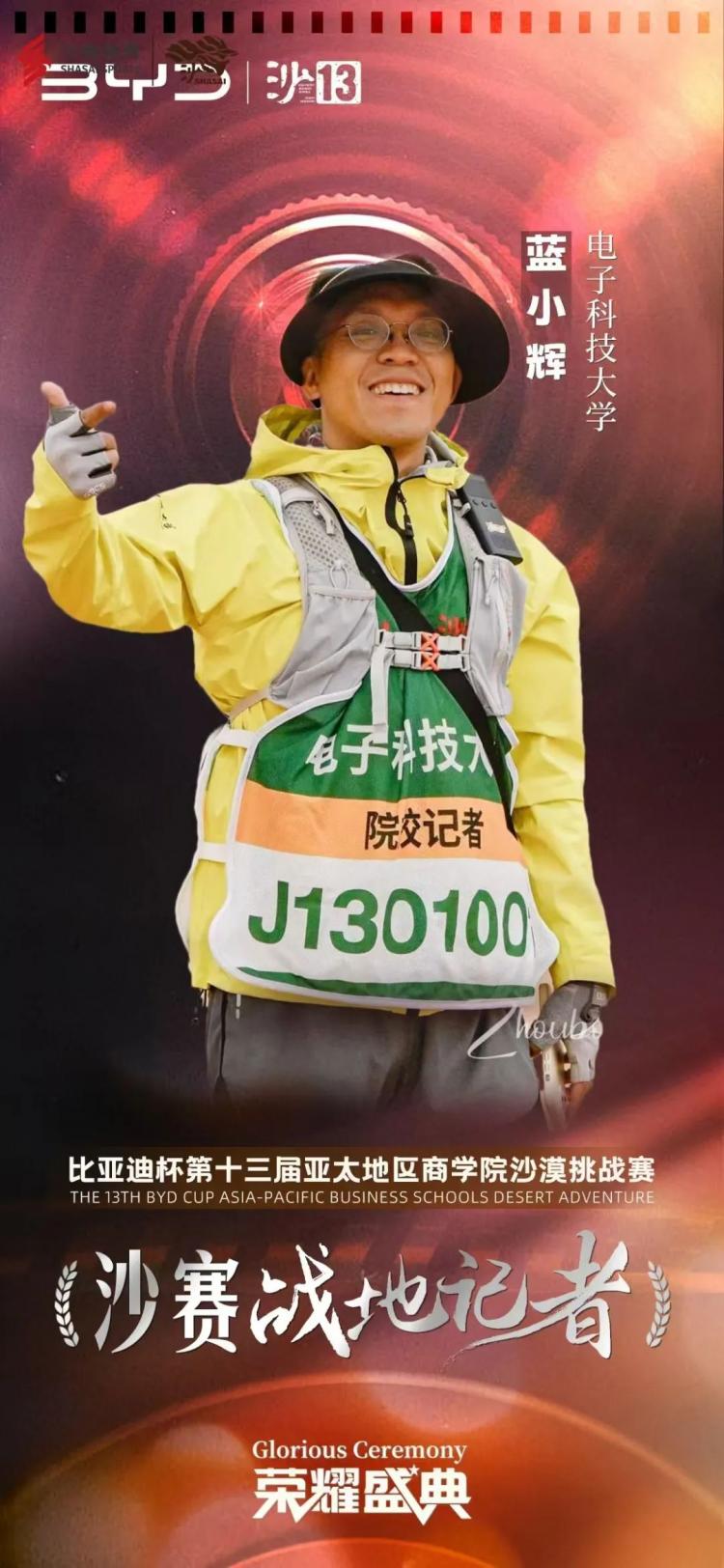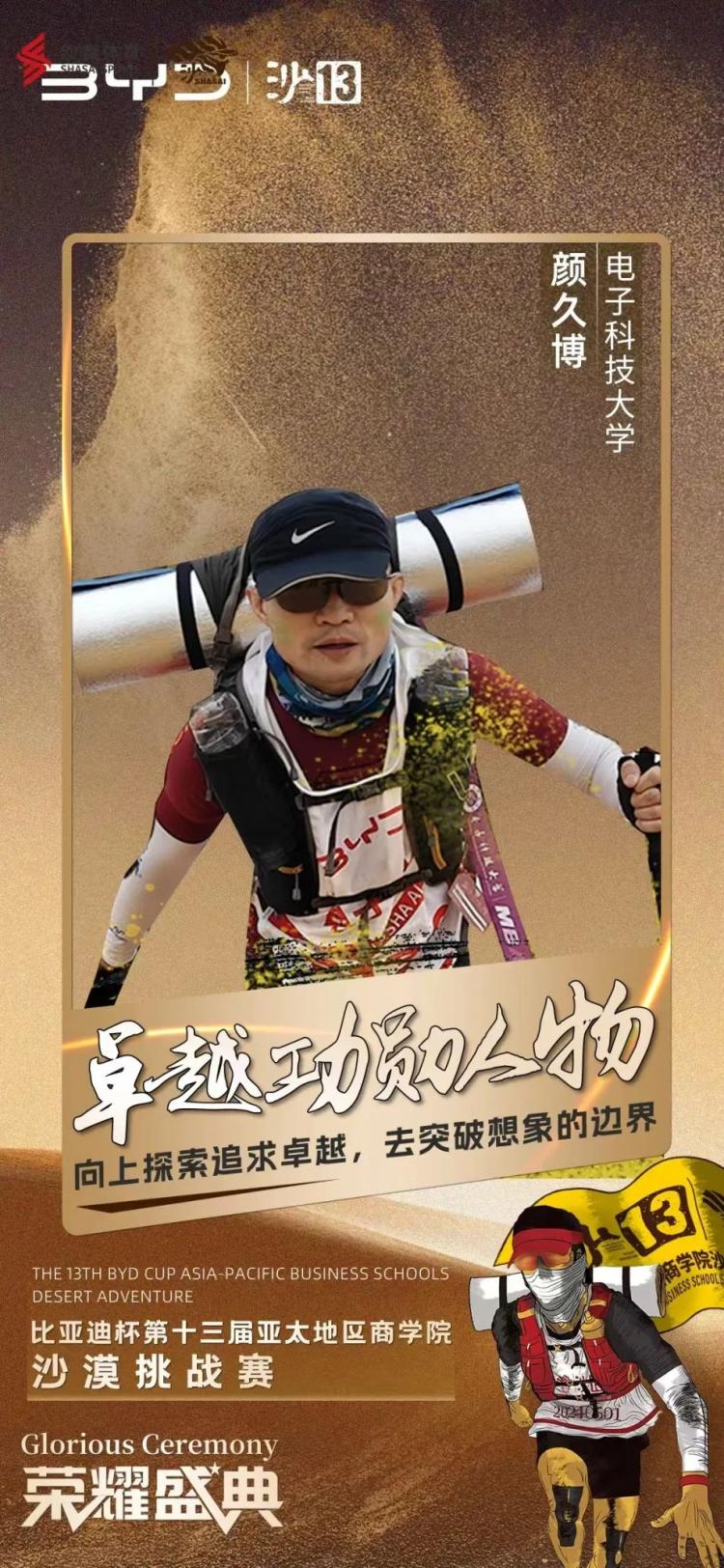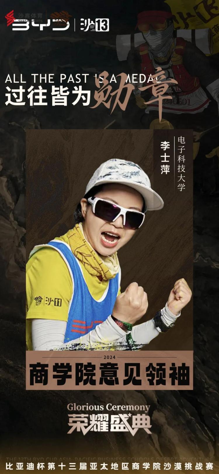 2024 年12月14日,比亞迪杯第十三屆亞太地區(qū)商學(xué)院沙漠挑戰(zhàn)賽頒獎(jiǎng)典禮于南京隆重舉行。電子科技大學(xué)團(tuán)隊(duì)在沙13頒獎(jiǎng)典禮上榮獲沙賽組委會(huì)頒發(fā)的多項(xiàng)團(tuán)隊(duì)與個(gè)人榮譽(yù)獎(jiǎng)項(xiàng)。這些榮譽(yù)不僅是對電子科技大學(xué)商學(xué)院沙賽團(tuán)隊(duì)整體實(shí)力的一種認(rèn)可,也從側(cè)面反映出團(tuán)隊(duì)中每一位成員在賽事過程中的默默奉獻(xiàn)與辛勤努力,是我們用堅(jiān)持和汗水鑄就了這份榮耀。