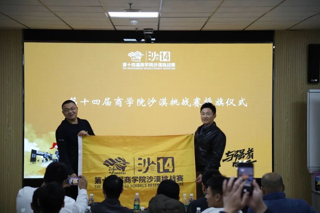 隨后,山東大學(xué)MBA沙13領(lǐng)隊劉志強與沙14領(lǐng)隊宋佰勝進(jìn)行沙14隊旗交接儀式。