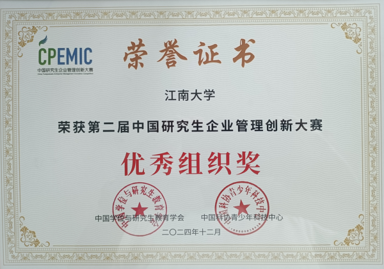 榮獲第二屆中國研究生企業(yè)管理創(chuàng)新大賽一等獎、二等獎、三等獎、優(yōu)秀組織獎等七項獎項