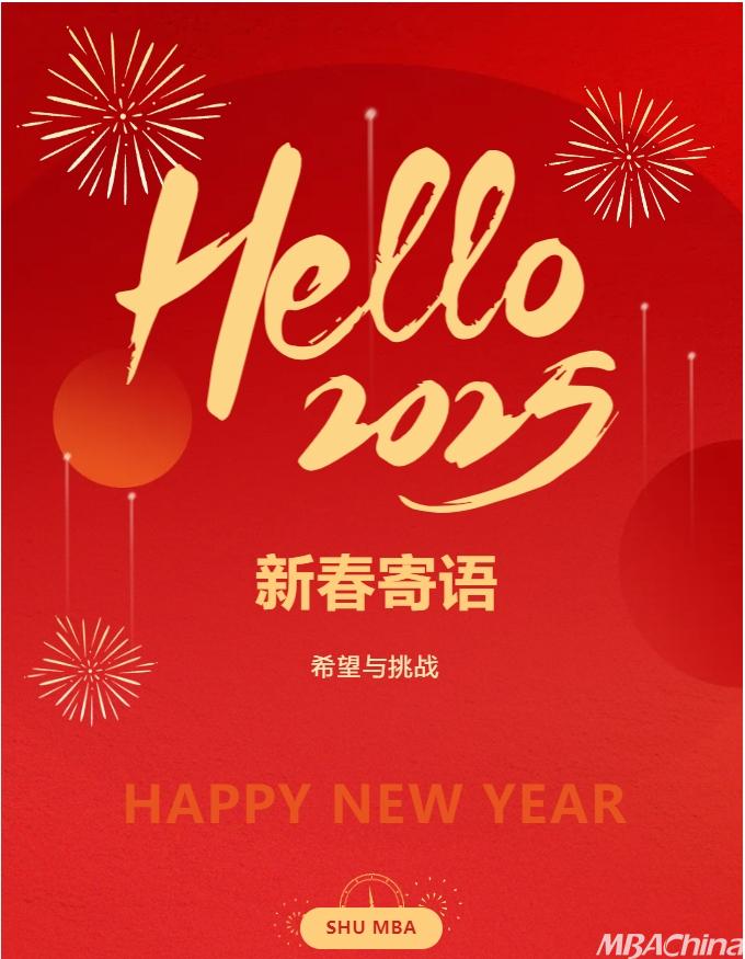 在這辭舊迎新的時刻,我謹代表上海大學MBA中心,向大家致以最誠摯的祝福!新的一年,伴隨著希望與挑戰(zhàn)的交織,我們滿懷信心,迎接未來。