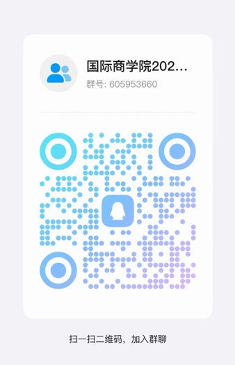請(qǐng)有調(diào)劑意向的考生掃描下方二維碼或搜索群號(hào)加入“國(guó)際商學(xué)院2025非全調(diào)劑意向群”,群號(hào):605953660,并掃描二維碼填寫調(diào)劑意向信息。