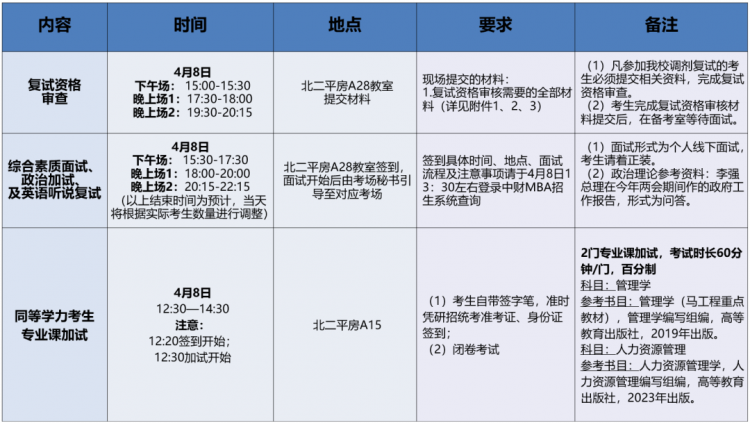4月8日13:30之后登錄我校MBA中心考生服務(wù)系統(tǒng)查看面試具體時(shí)間、地點(diǎn)及注意事項(xiàng);