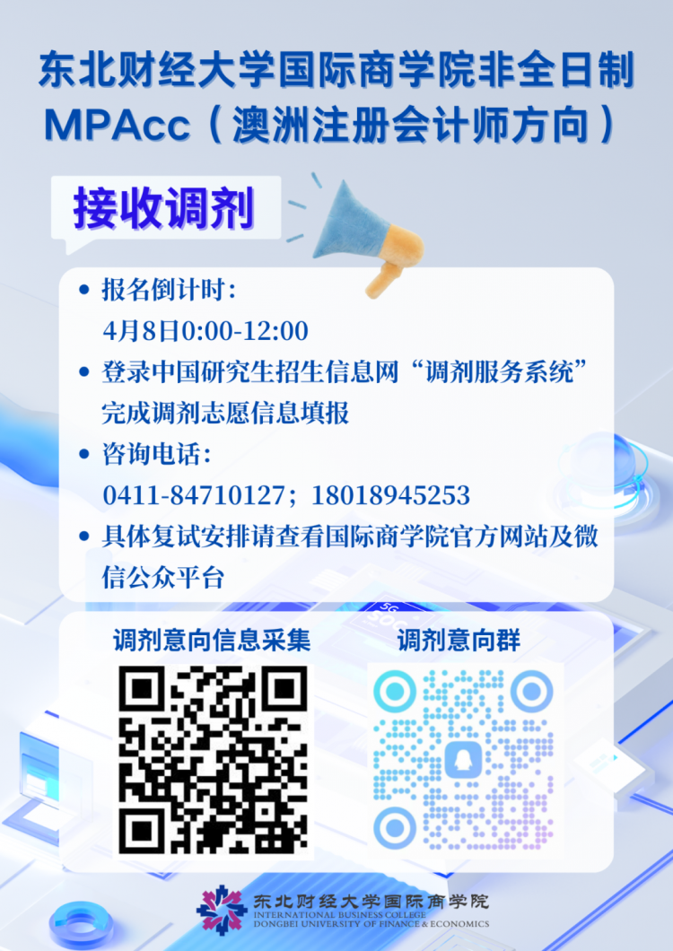東北財(cái)經(jīng)大學(xué)國(guó)際商學(xué)院非全日制MPAcc(澳洲注冊(cè)會(huì)計(jì)師方向)調(diào)劑報(bào)名進(jìn)入倒計(jì)時(shí)階段。