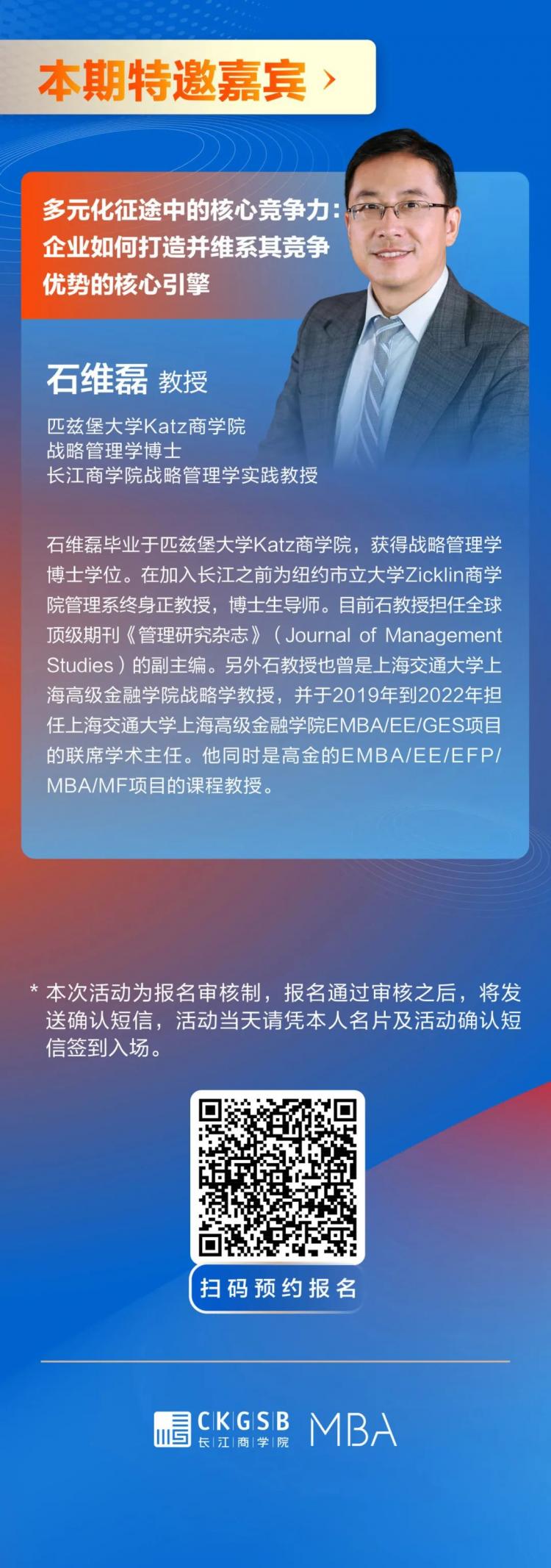 長江商學(xué)院MBA公開課于上海舉辦,主題圍繞多元化征途中的核心競爭力展開。