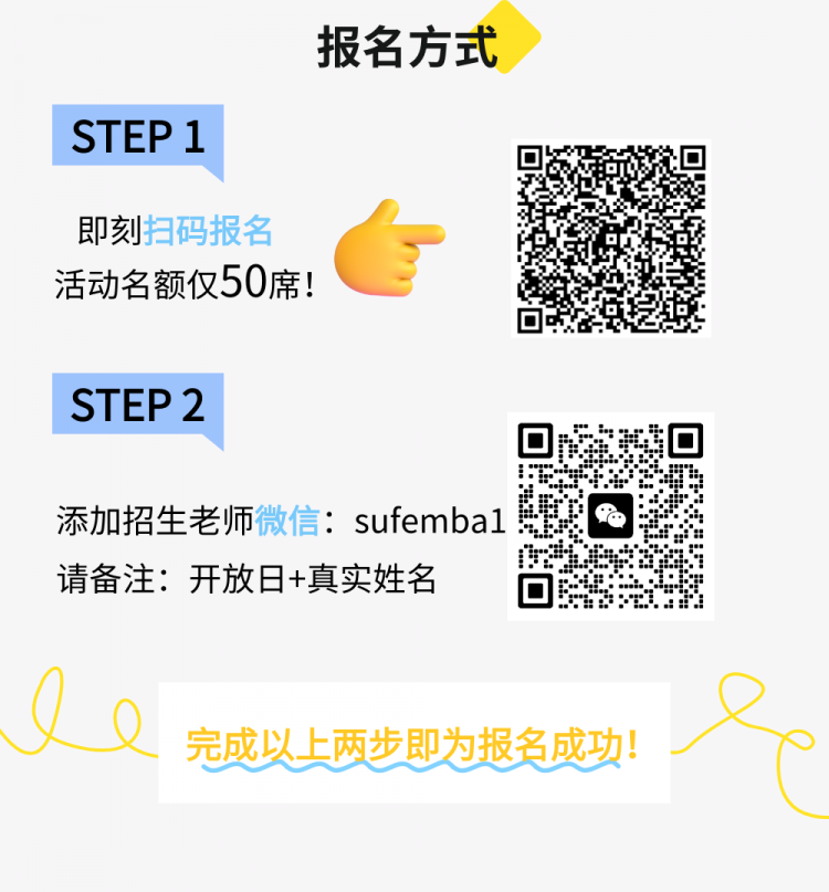 參與開放日活動(dòng),能了解2026年入學(xué)最新培養(yǎng)方案及班型亮點(diǎn),知曉如何在“商界精英”計(jì)劃中沖刺優(yōu)秀,明晰招錄流程安排,掌握不可錯(cuò)過(guò)的寶藏招生活動(dòng)等。更多個(gè)性化問(wèn)題可在活動(dòng)現(xiàn)場(chǎng)與招生辦老師交流。關(guān)于公開日活動(dòng)更多信息,需持續(xù)關(guān)注“上海財(cái)經(jīng)大學(xué)MBA”官方微信公眾號(hào) 。