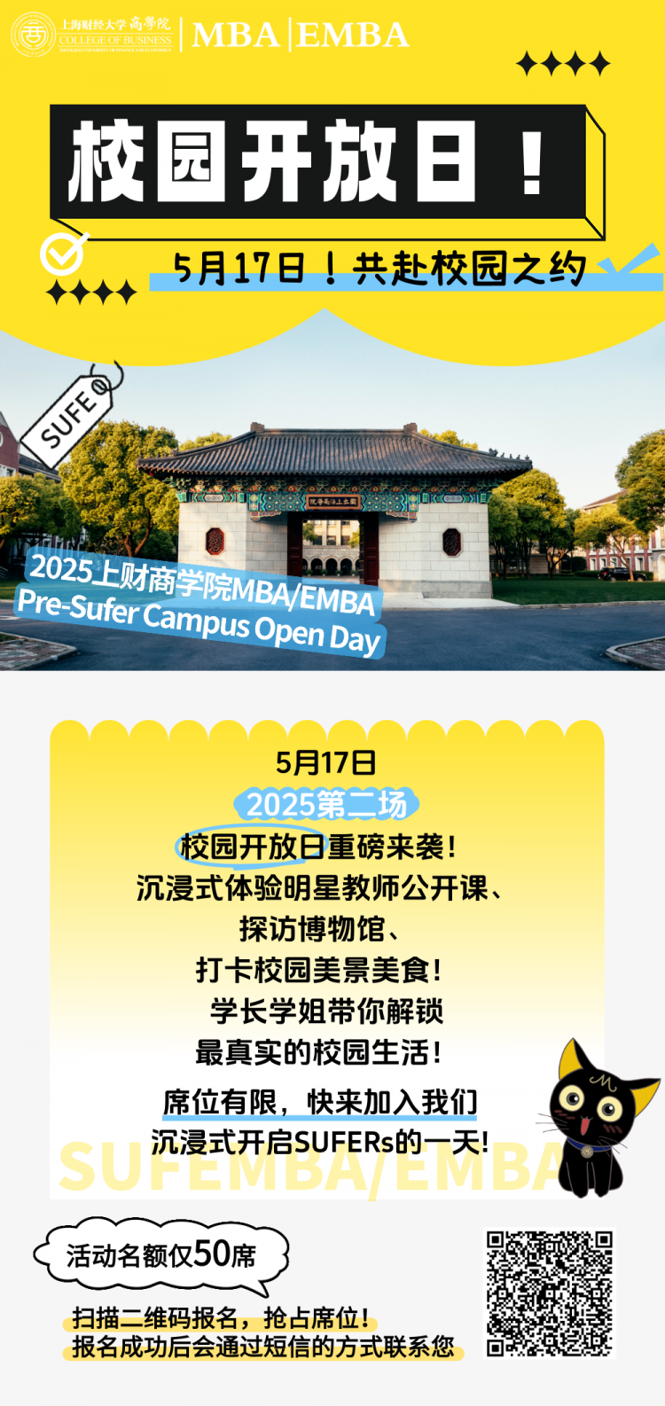 5月校園開放日,沉浸體驗(yàn)上財(cái)商學(xué)院MBA/EMBA,速來(lái)打卡!席位有限,搶先報(bào)名!