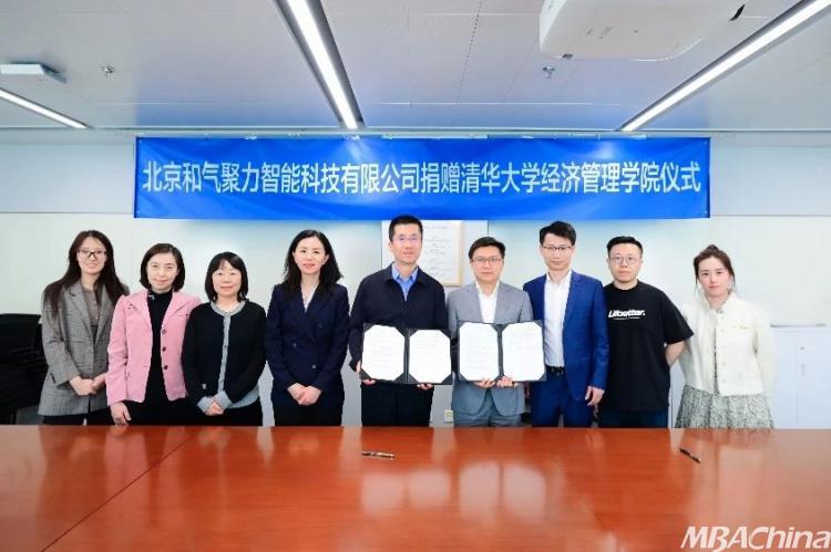 清華經(jīng)管學(xué)院MBA教育中心高志麗、吳英納、吳燦,和氣聚力產(chǎn)品經(jīng)理閆磊、市場總監(jiān)張妍妍出席了捐贈儀式。