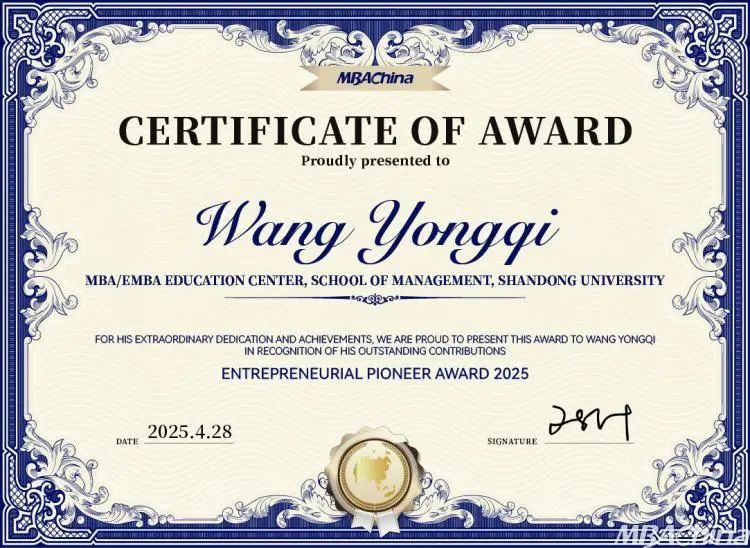 論壇同期,揭曉了2025年度常青品牌典范院校獎(jiǎng),山東大學(xué)管理學(xué)院 MBA/EMBA教育中心憑借其卓越的辦學(xué)理念與持續(xù)創(chuàng)新的教育實(shí)踐,榮膺這一獎(jiǎng)項(xiàng)。山東大學(xué)管理學(xué)院EMBA校友王永起榮獲2025年度亞洲商學(xué)院創(chuàng)業(yè)先鋒獎(jiǎng)。