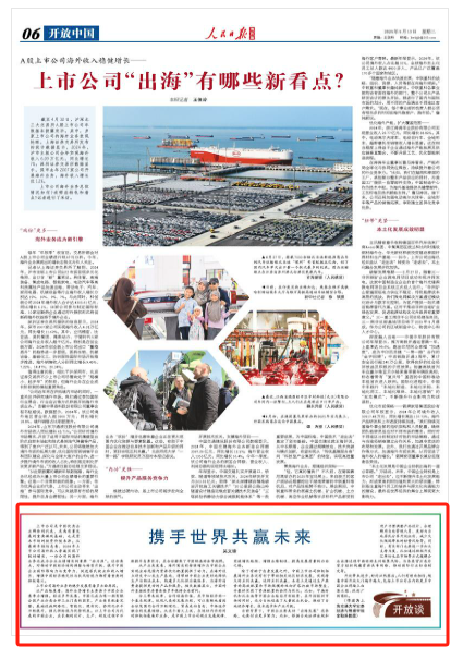 5月13日,《人民日報》海外版刊發(fā)吳文鋒文章《攜手世界 共贏未來》。2024年上市公司海外收入普遍增長,海外業(yè)務成業(yè)績“動力源”,對中國經(jīng)濟結構調整等多方面有積極意義。其穩(wěn)步發(fā)展原因多方面,產品維度上,中國產業(yè)體系完備,企業(yè)競爭力增強;產業(yè)角度看,海外需求增加促使企業(yè)優(yōu)化資源配置,對外投資存量居前。積極拓展海外業(yè)務,上市公司既能自身發(fā)展,又能帶動相關地區(qū)經(jīng)濟。如寧德時代等企業(yè)赴匈牙利投資,實現(xiàn)互利共贏。當前中國企業(yè)“出?!毙枧m應,有關部門也應加大支持。隨著開放擴大,更多中國企業(yè)將出海尋商機 。
