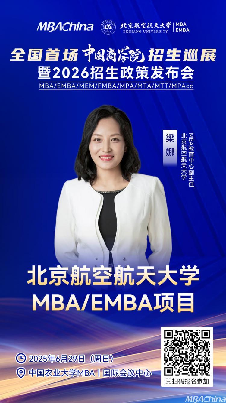 6月29日 | 北京航空航天大學(xué)MBA/EMBA邀您參加中國(guó)商學(xué)院招生巡展暨2026招生政策發(fā)布會(huì)!