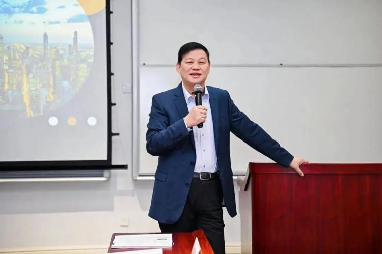 在本次移動(dòng)課堂的開班儀式上,中國(guó)科學(xué)技術(shù)大學(xué)EMBA中心主任劉志迎教授致辭。