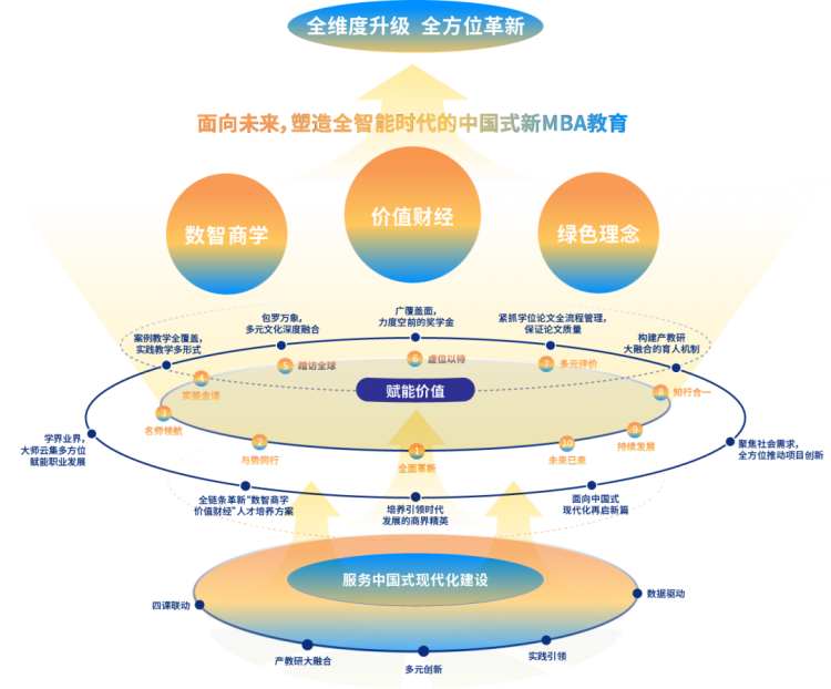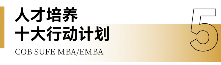 立時(shí)代潮頭,育商界精英。面對(duì)新時(shí)代商業(yè)環(huán)境的深刻變革與對(duì)高質(zhì)量管理人才的迫切需求,項(xiàng)目精準(zhǔn)發(fā)力,聚焦財(cái)經(jīng)特色,圍繞學(xué)生發(fā)展,致力于將人才培養(yǎng)、商學(xué)研究和社會(huì)服務(wù)各環(huán)節(jié)融匯貫通,開展十大行動(dòng)計(jì)劃,面向未來,塑造全智能時(shí)代的中國(guó)式新MBA教育。