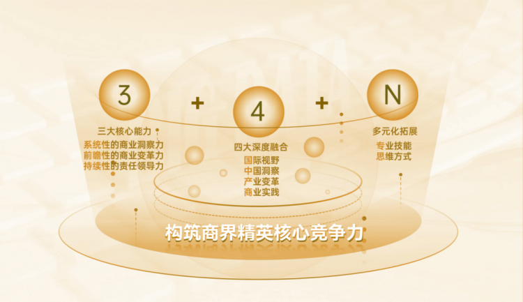 通過“3+4+N”系統(tǒng)構(gòu)建商界精英的核心競(jìng)爭(zhēng)力,以滿足學(xué)生個(gè)性化發(fā)展和多變的市場(chǎng)需求,從而更好地賦能管理者,使其具備在復(fù)雜商業(yè)場(chǎng)景中做出高效、科學(xué)決策的基本素養(yǎng)和能力,應(yīng)對(duì)未來更復(fù)雜、更不確定的商業(yè)環(huán)境。
