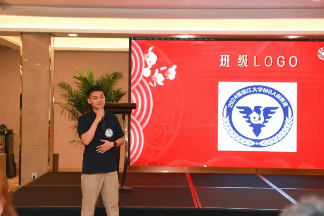班長(zhǎng)丁黎強(qiáng)向嘉賓們隆重揭曉了班級(jí)的精神圖騰——班徽。班徽以“求是鷹懷抱‘創(chuàng)’字”為核心設(shè)計(jì),寓意著浙大這片沃土如同溫暖的懷抱,精心孵化著每一位懷揣創(chuàng)業(yè)夢(mèng)想的學(xué)子。與之呼應(yīng)的口號(hào)“創(chuàng)新聚力,破浪同行”,彰顯出班級(jí)成員凝聚多元智慧、攜手協(xié)作、共迎挑戰(zhàn)的堅(jiān)定決心。“今日聚力,只為明日破浪前行,我們并肩開(kāi)拓,絕非獨(dú)行!”