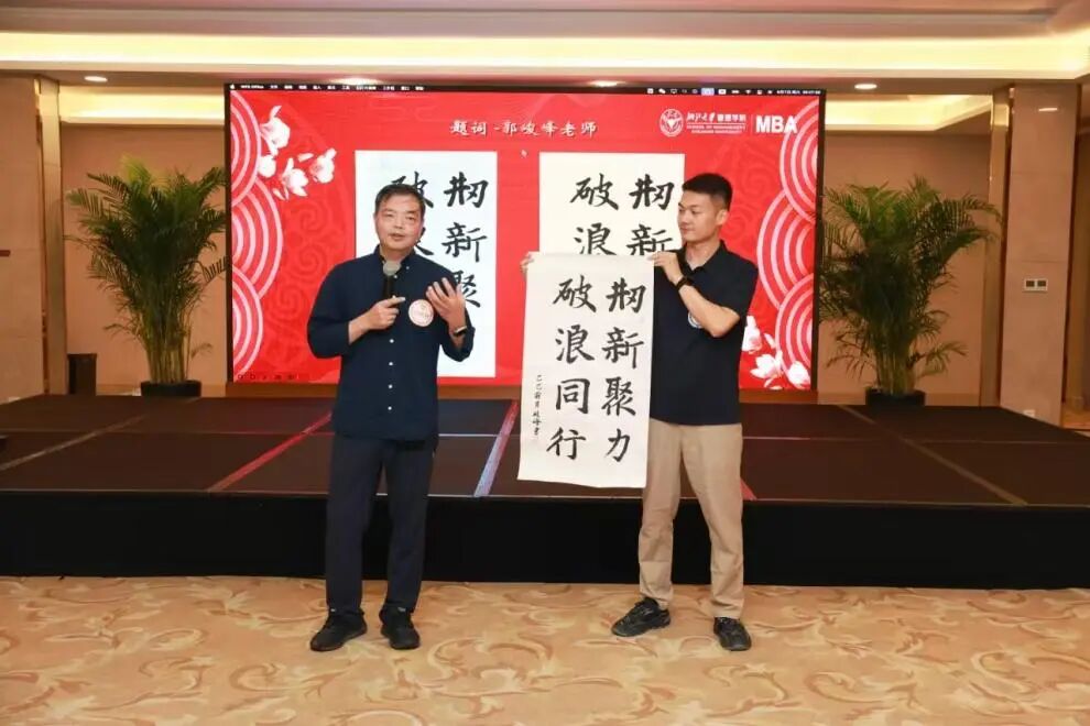 浙江大學(xué)管理學(xué)院實(shí)踐教授、浙大MBA《創(chuàng)業(yè)領(lǐng)導(dǎo)力》授課教師郭峻峰創(chuàng)作的墨寶 “創(chuàng)新聚力,破浪同行” ,在典禮上成為了獨(dú)特的文化注腳。筆力遒勁的書法,傳遞對(duì)創(chuàng)業(yè)者攜手奮進(jìn)、突破創(chuàng)新的期許,以文化之韻,為創(chuàng)業(yè)同行注入精神力量,讓藝術(shù)與奮斗熱忱交融,為創(chuàng)業(yè)同行注入了強(qiáng)大的精神力量。