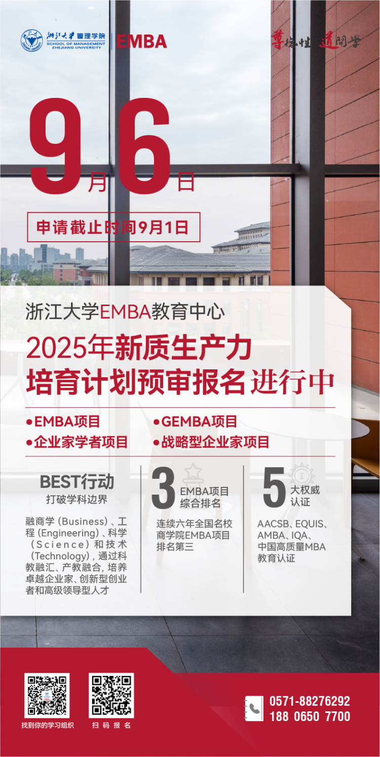 9月6日 | 2025年浙大EMBA最新一期報名進行中!