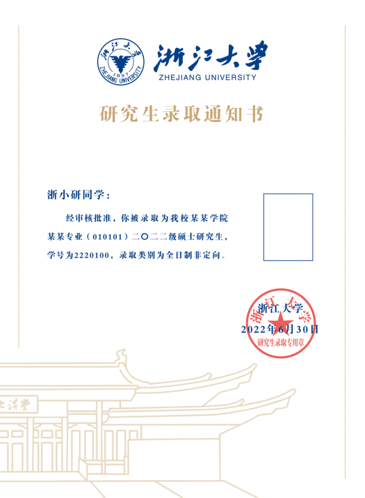 浙江大學(xué)研究生錄取通知書