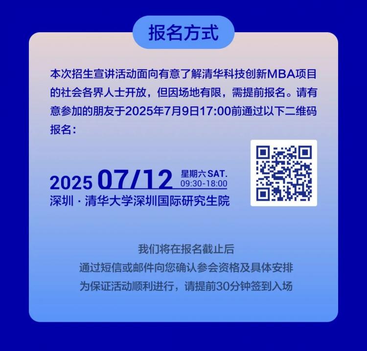 報名即將截止 | 2026級清華科技創(chuàng)新MBA招生宣講會等你參與!