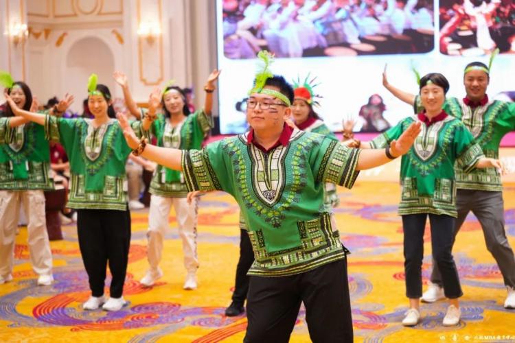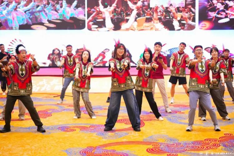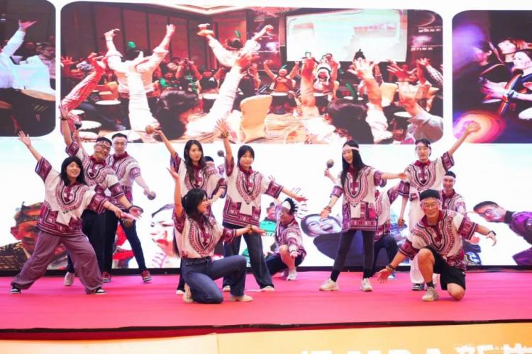隨后,充滿異域風(fēng)情的非洲鼓學(xué)習(xí)火熱啟動(dòng)。同學(xué)們以班級(jí)為單位分為 7 組,圍繞 “一個(gè)團(tuán)隊(duì)、一個(gè)節(jié)奏、一個(gè)聲音” 的目標(biāo)展開節(jié)奏競(jìng)演?;顒?dòng)中,色彩斑斕的服飾、熱情洋溢的氛圍與激昂的鼓點(diǎn)相互交織,各班級(jí)盡顯獨(dú)特風(fēng)采。隨著鼓聲、歌舞聲和歡呼聲此起彼伏,非洲鼓活動(dòng)被推向高潮,每位同學(xué)都深切感受到集體凝聚力的進(jìn)一步升華。