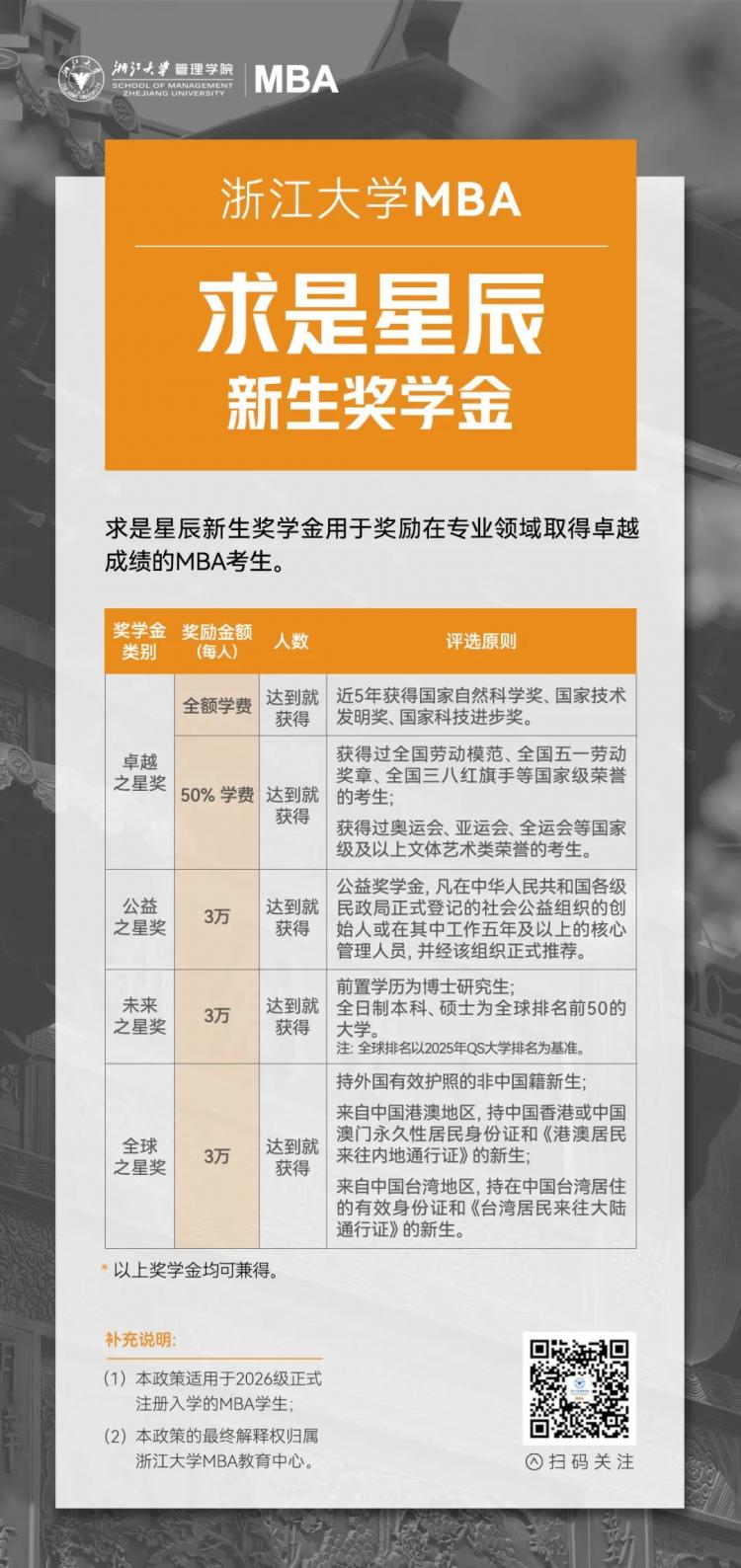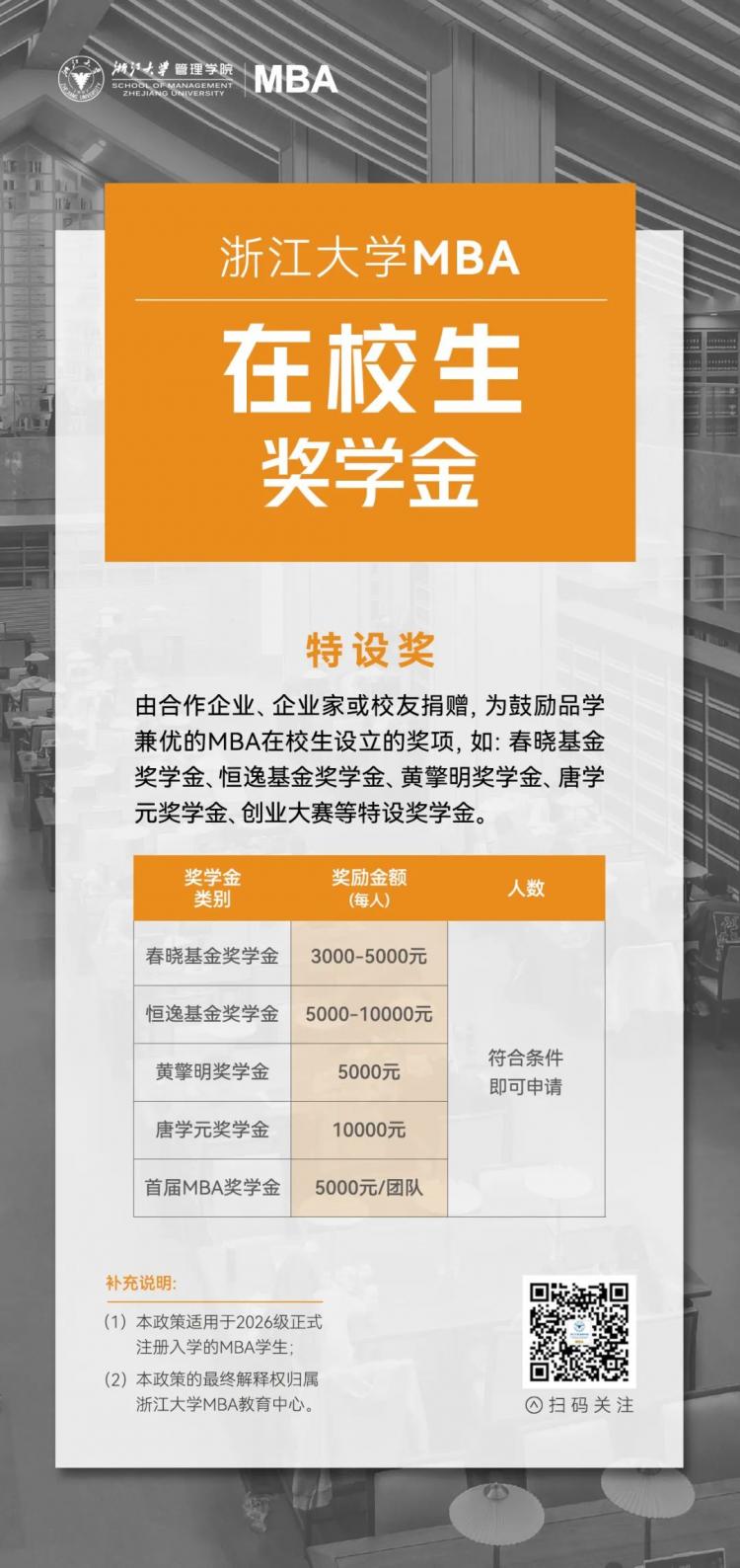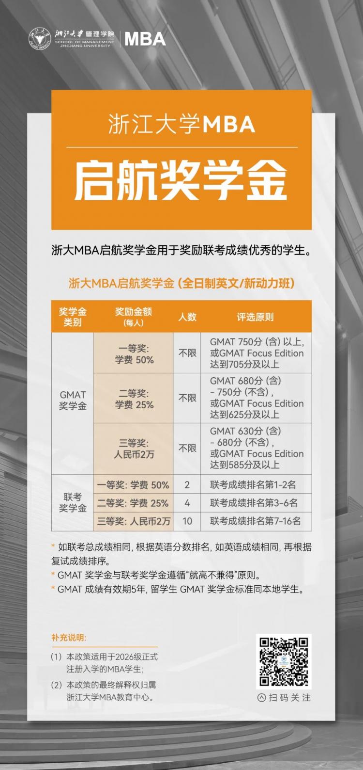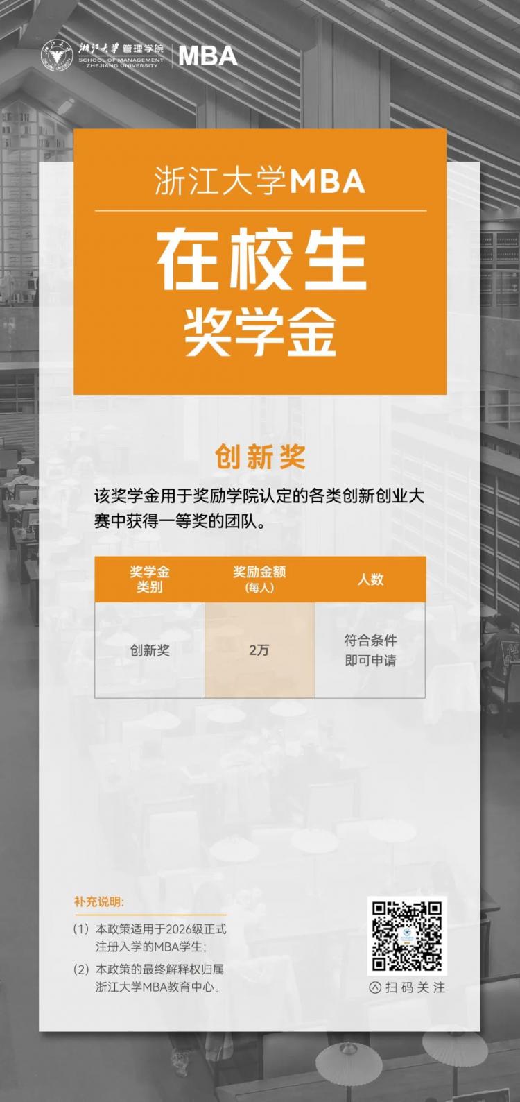 2026升級(jí)版浙大MBA獎(jiǎng)學(xué)金,一篇了解!